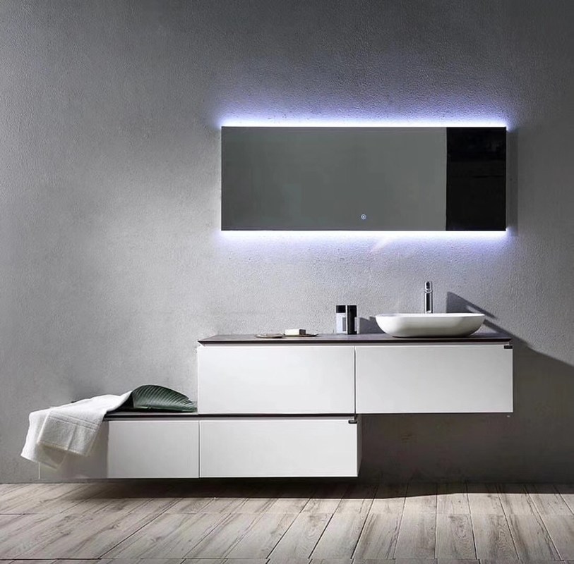 आधुनिक शैली और लालित्य एक साथ तैयार किए गए आधुनिक शैली के प्लाइवुड बाथरूम वैनिटी के लिए हल्के मेकअप दर्पण के साथ आते हैं। यह आपके बाथरूम में लालित्य का एक स्पर्श जोड़ देगा और निश्चित रूप से आपके डिजाइन को फिर से सक्रिय करेगा और आपके बाथरूम की उपस्थिति को आधुनिक करेगा।